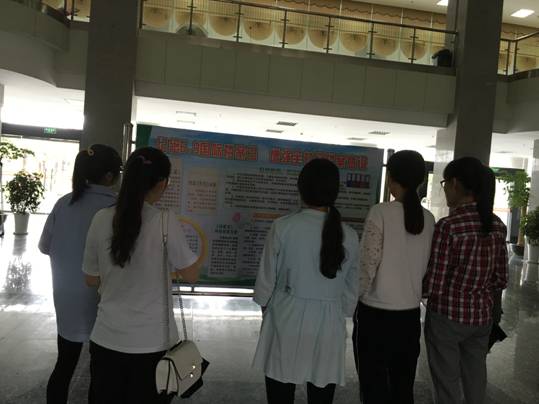 夏雨微风中,我校师生聚集在一楼大厅的展板前时而专注看时而小声议。